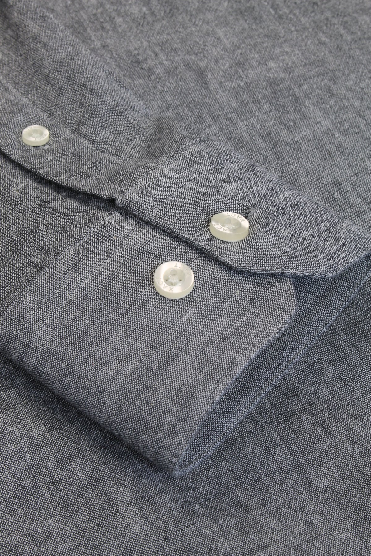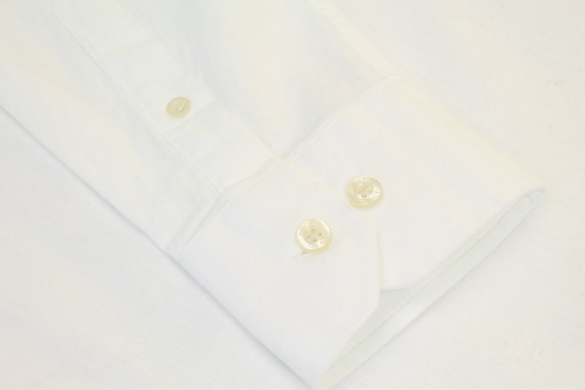 Unique collarless design adds contemporary twist to classic button-down shirt