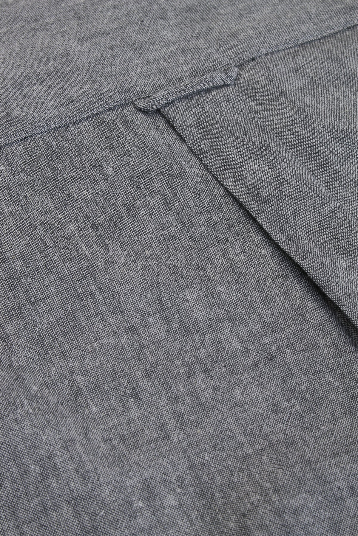 Features button chest pocket, rear box pleat, and hook for added functionality and detail