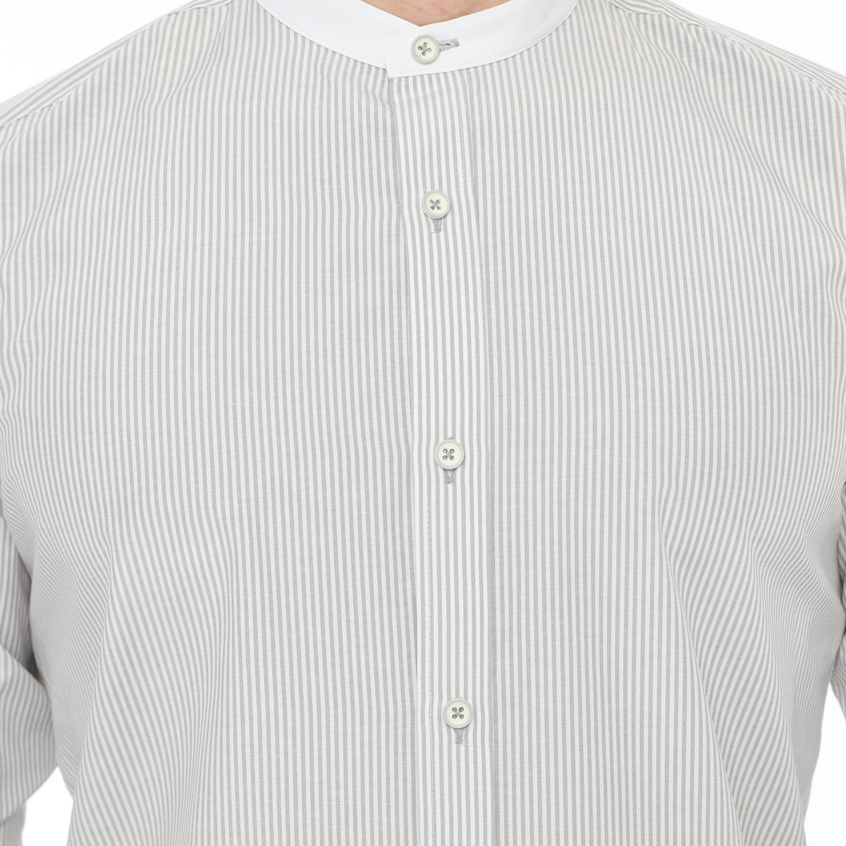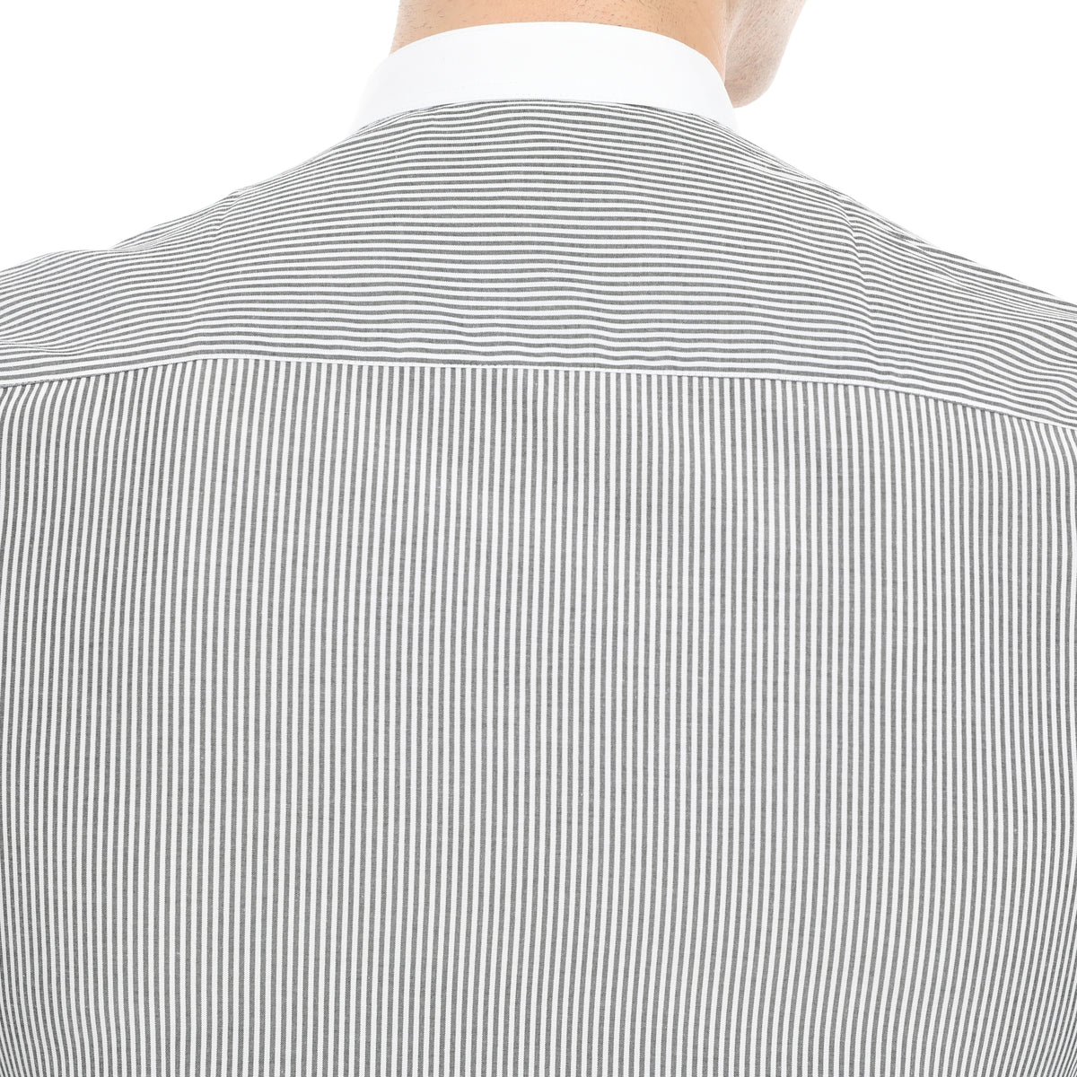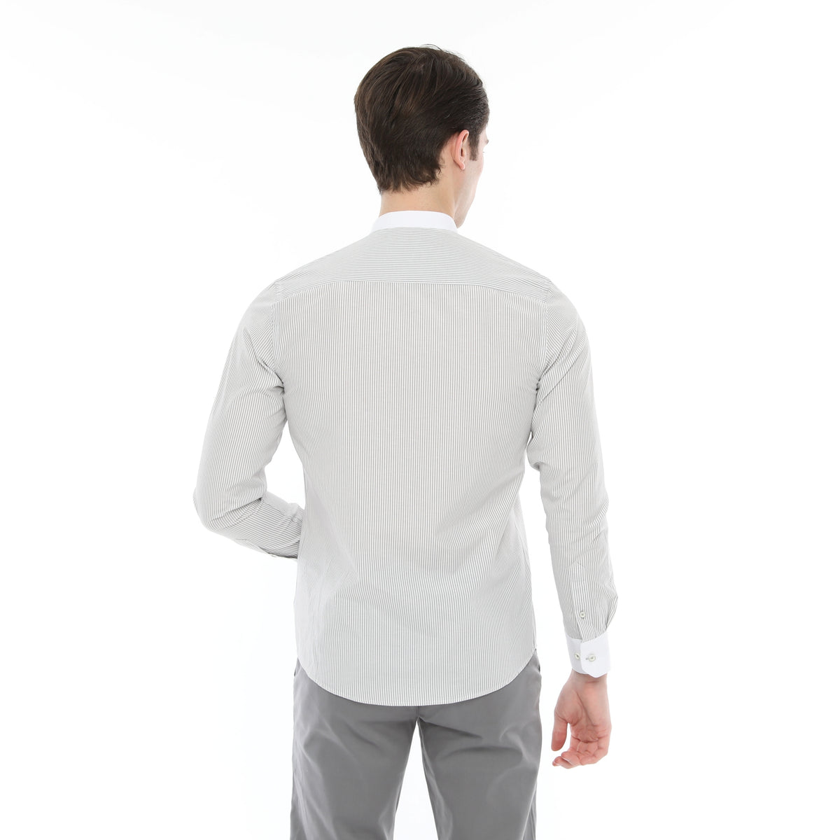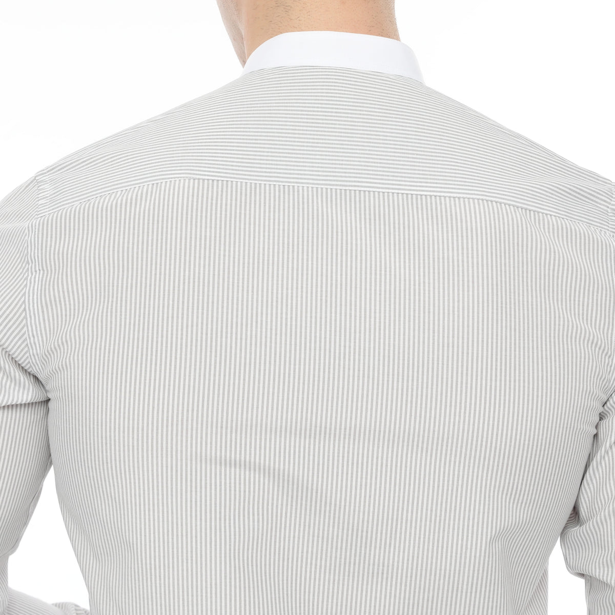 Xact Mens White Collar Striped Grandad Shirt - Long Sleeved