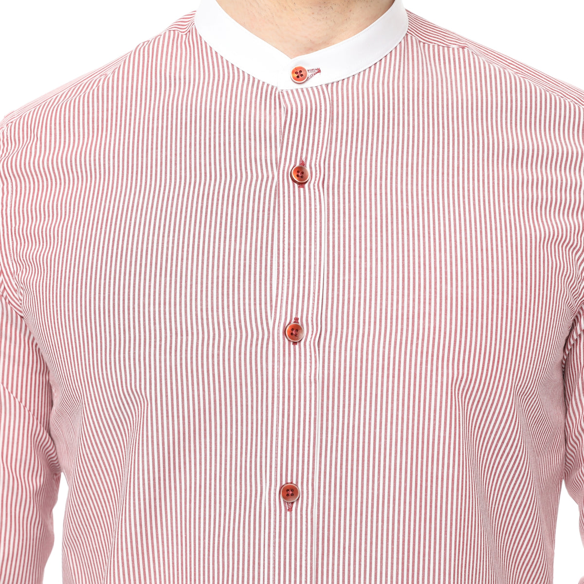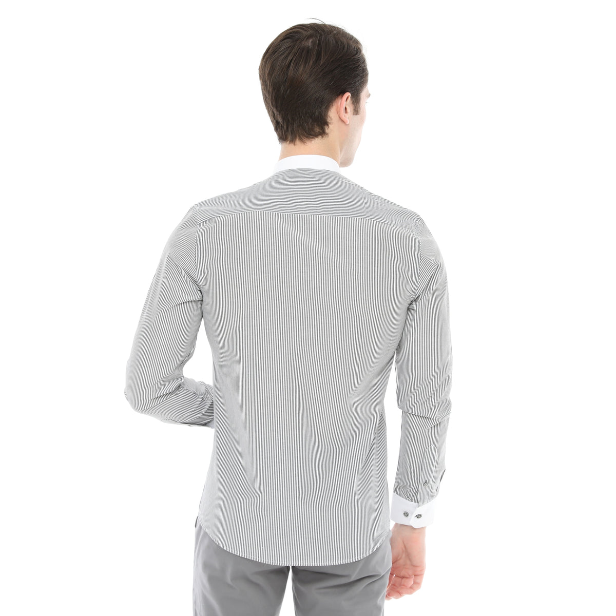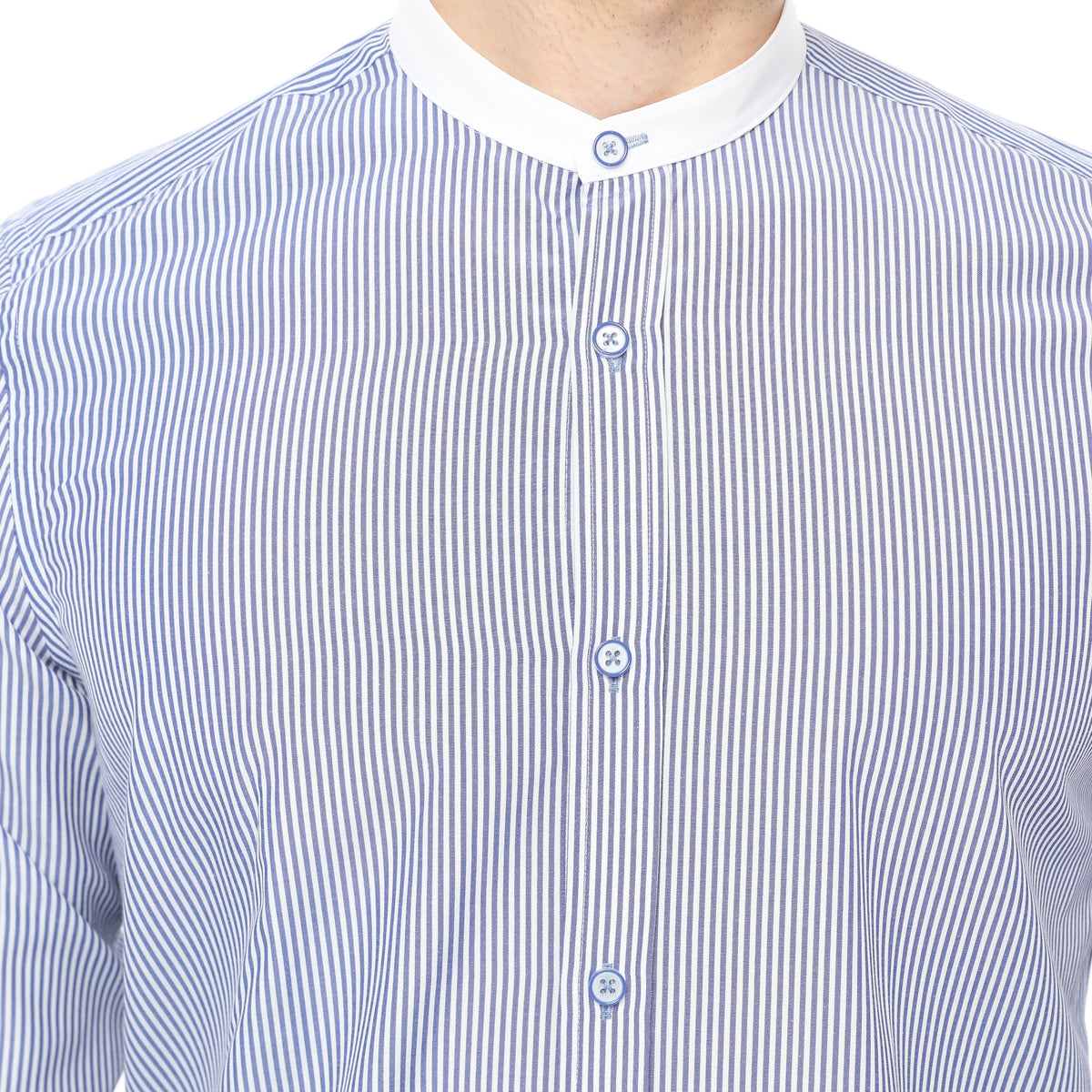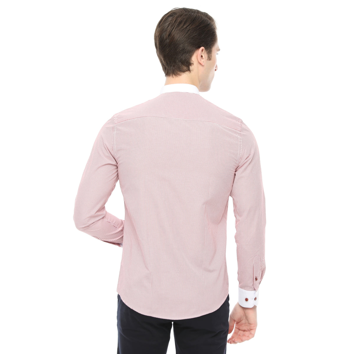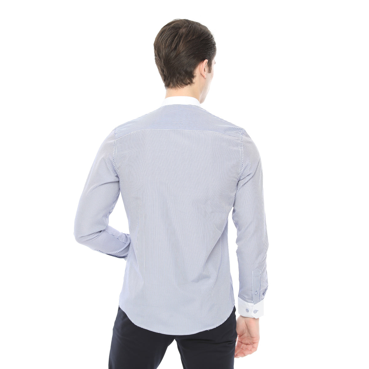 Xact Mens White Collar Striped Grandad Shirt - Long Sleeved