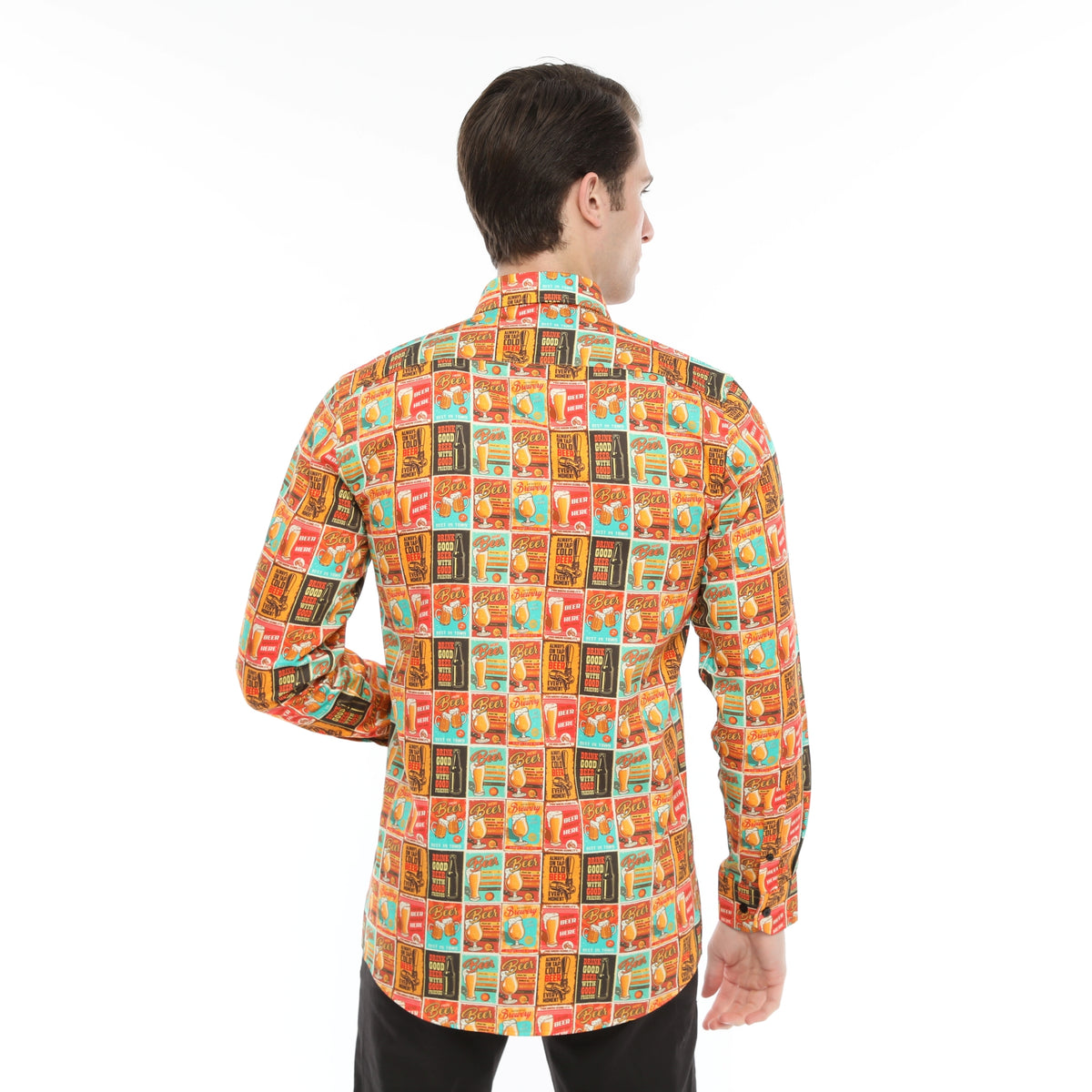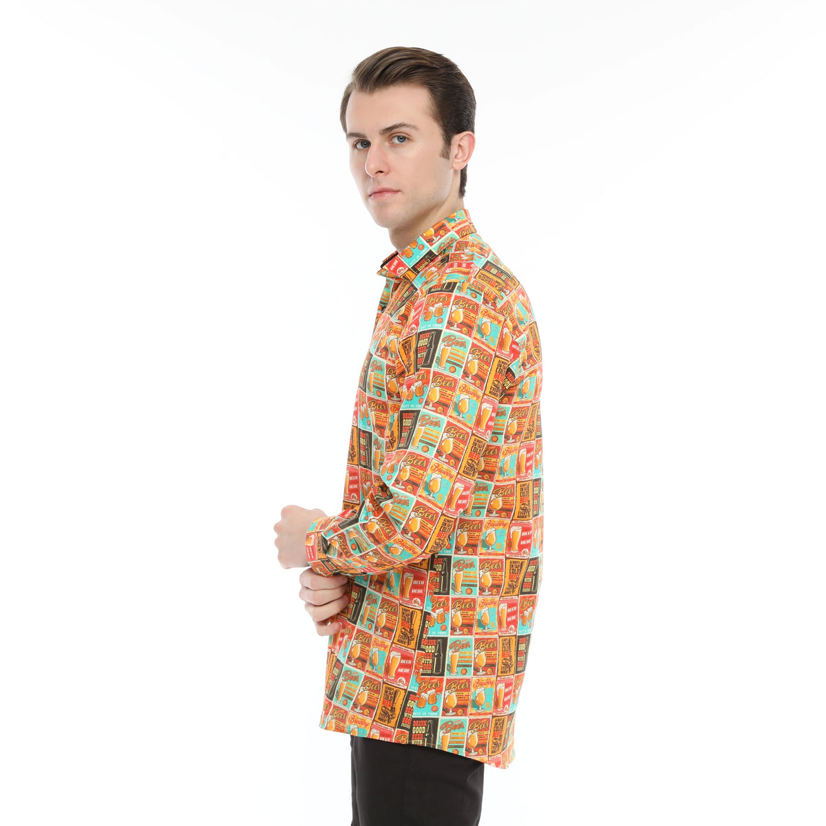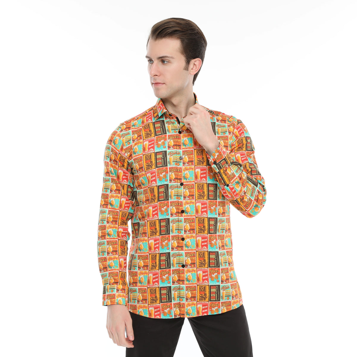 Beer Print Pattern: Flaunt a unique and playful style with the shirt's distinctive beer print pattern, adding a fun and conversation-starting element to your party attire
