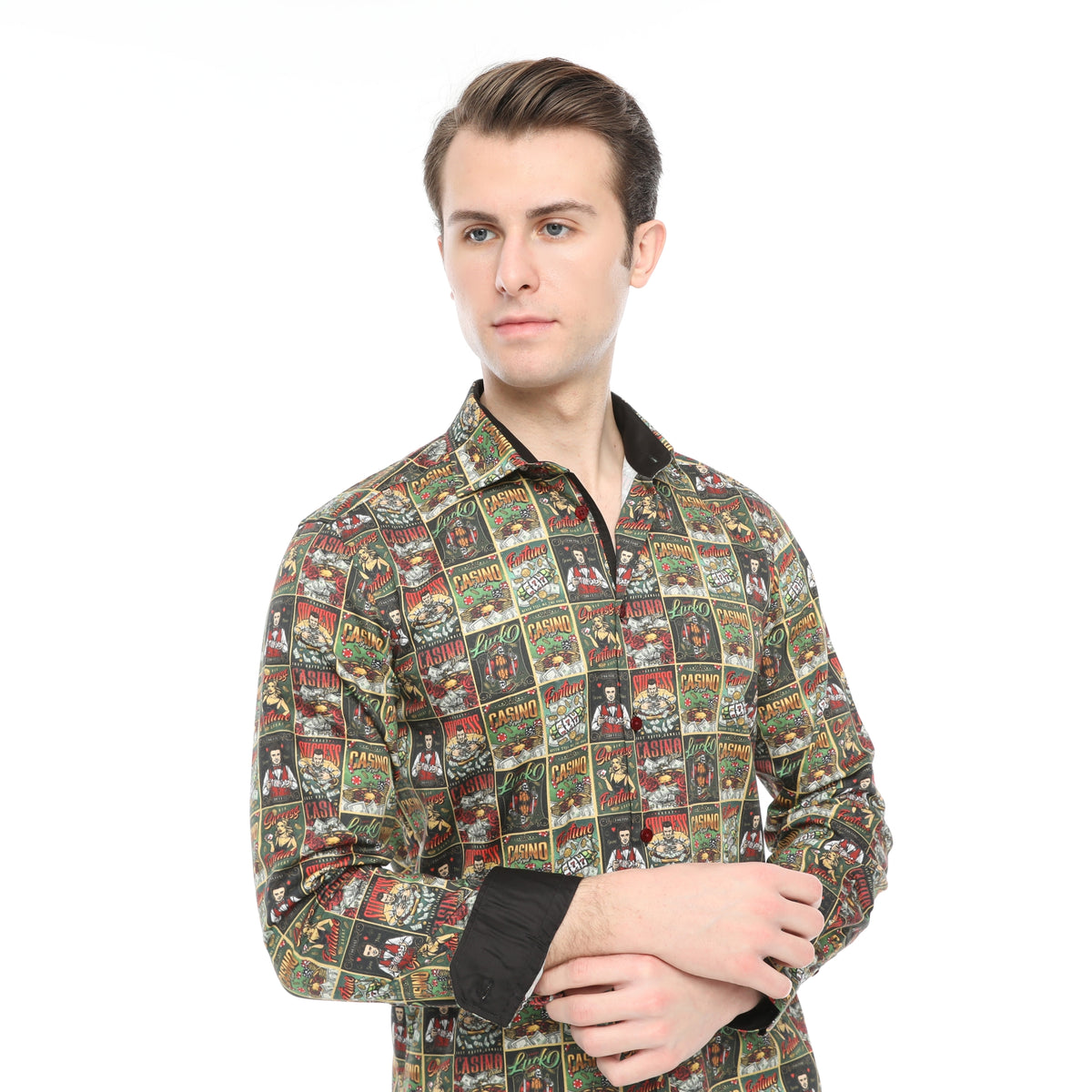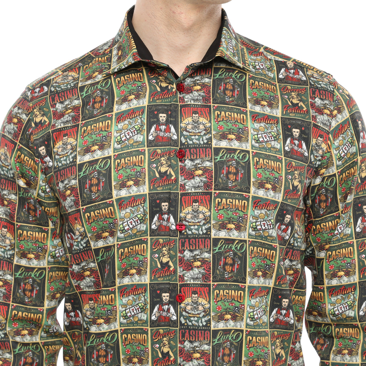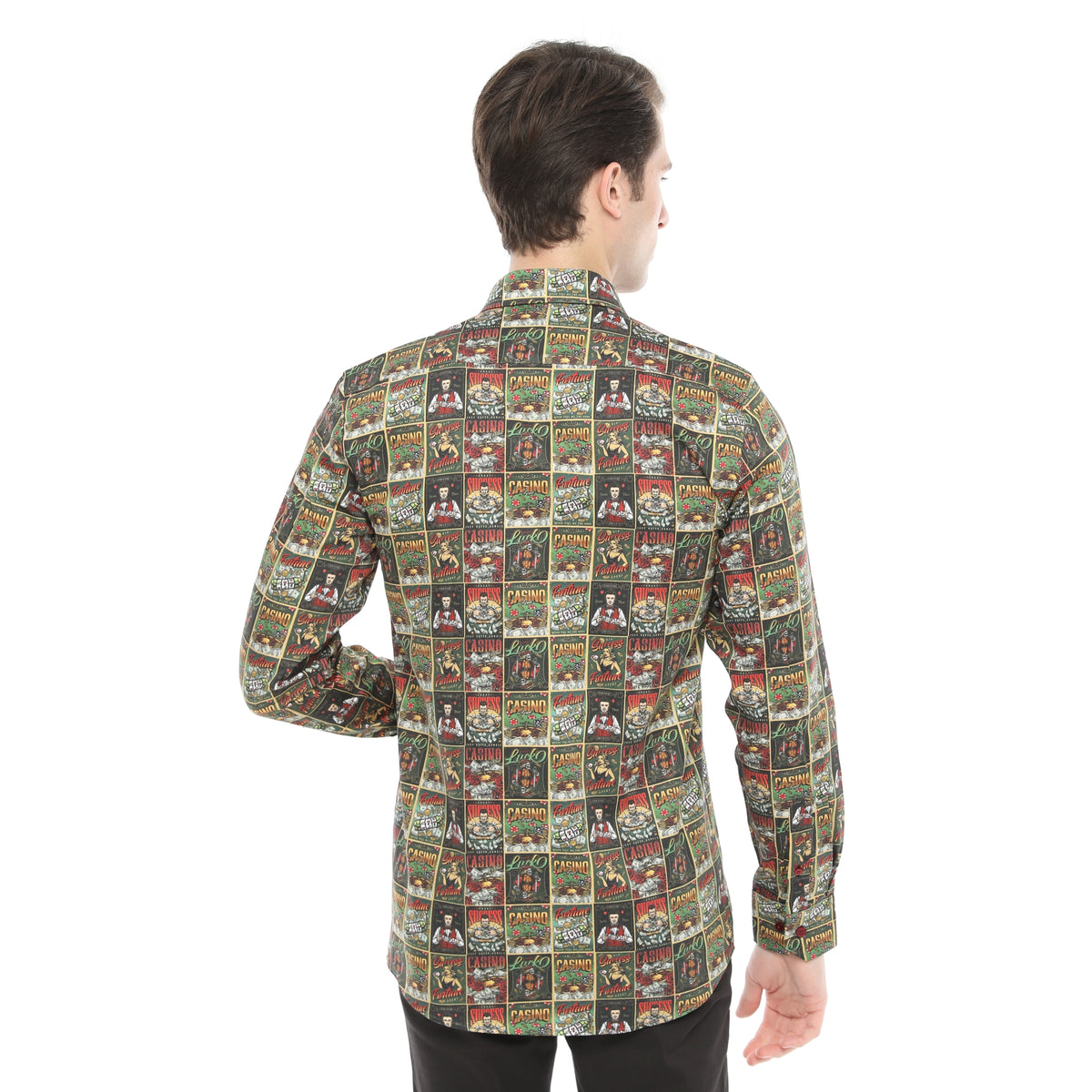 Xact Men's Casino Poster Print Long Sleeved Shirt, Regular Fit