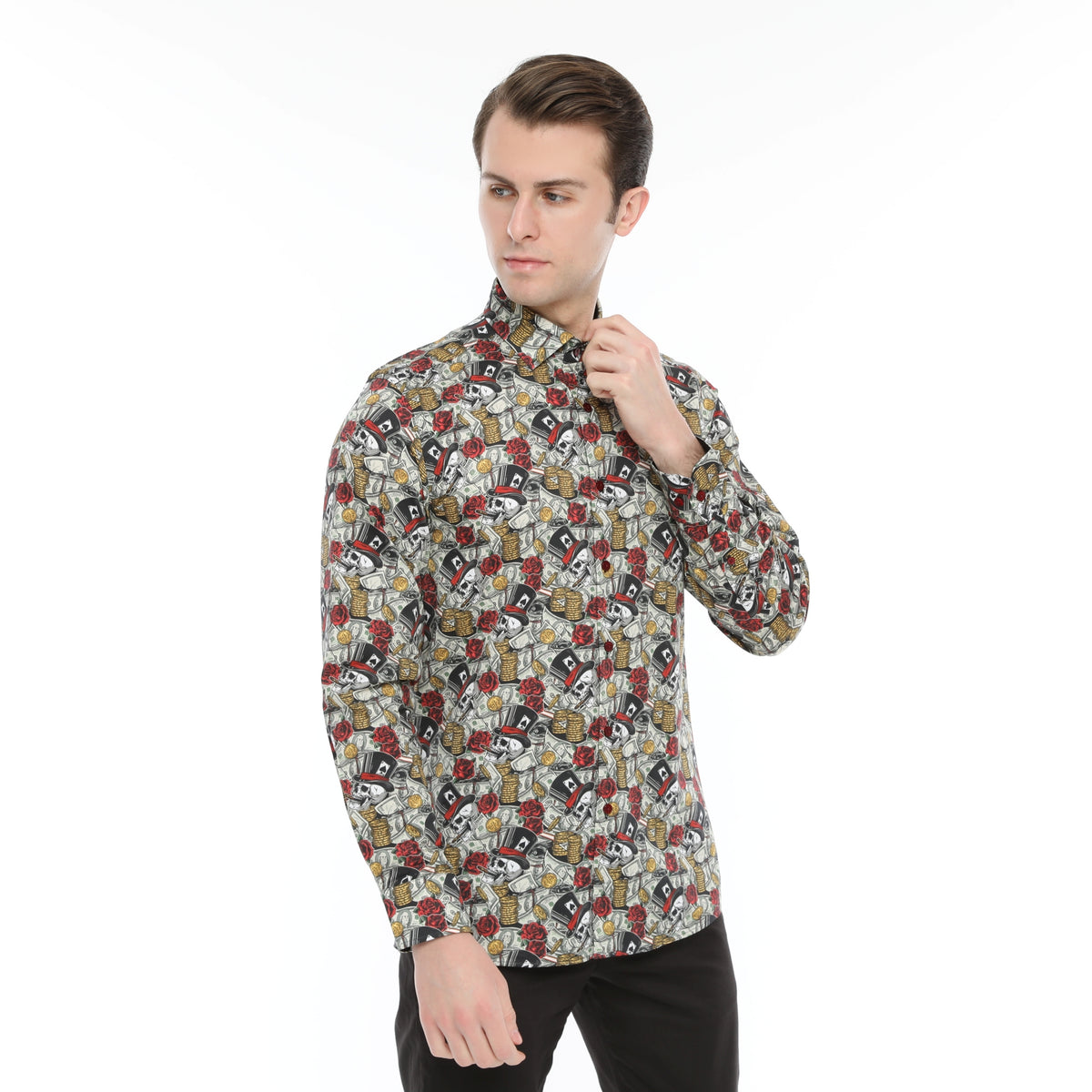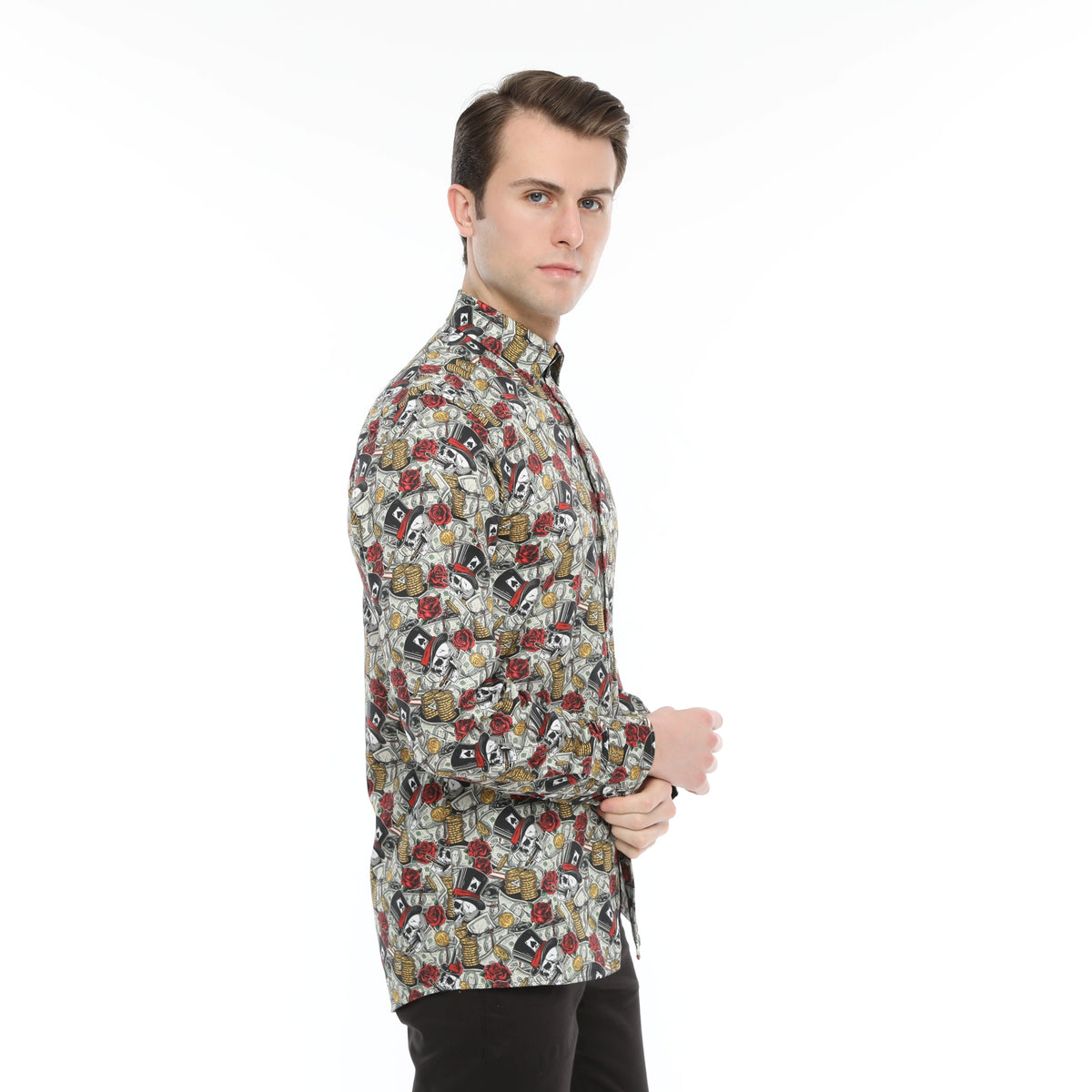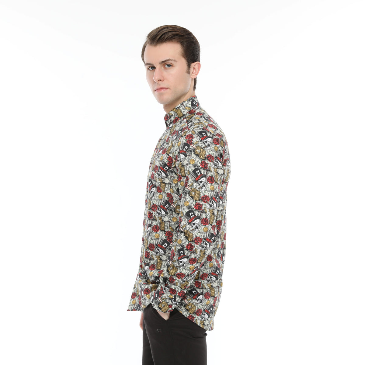 Xact Men's Gambling Skulls Print Long Sleeved Shirt, Regular Fit