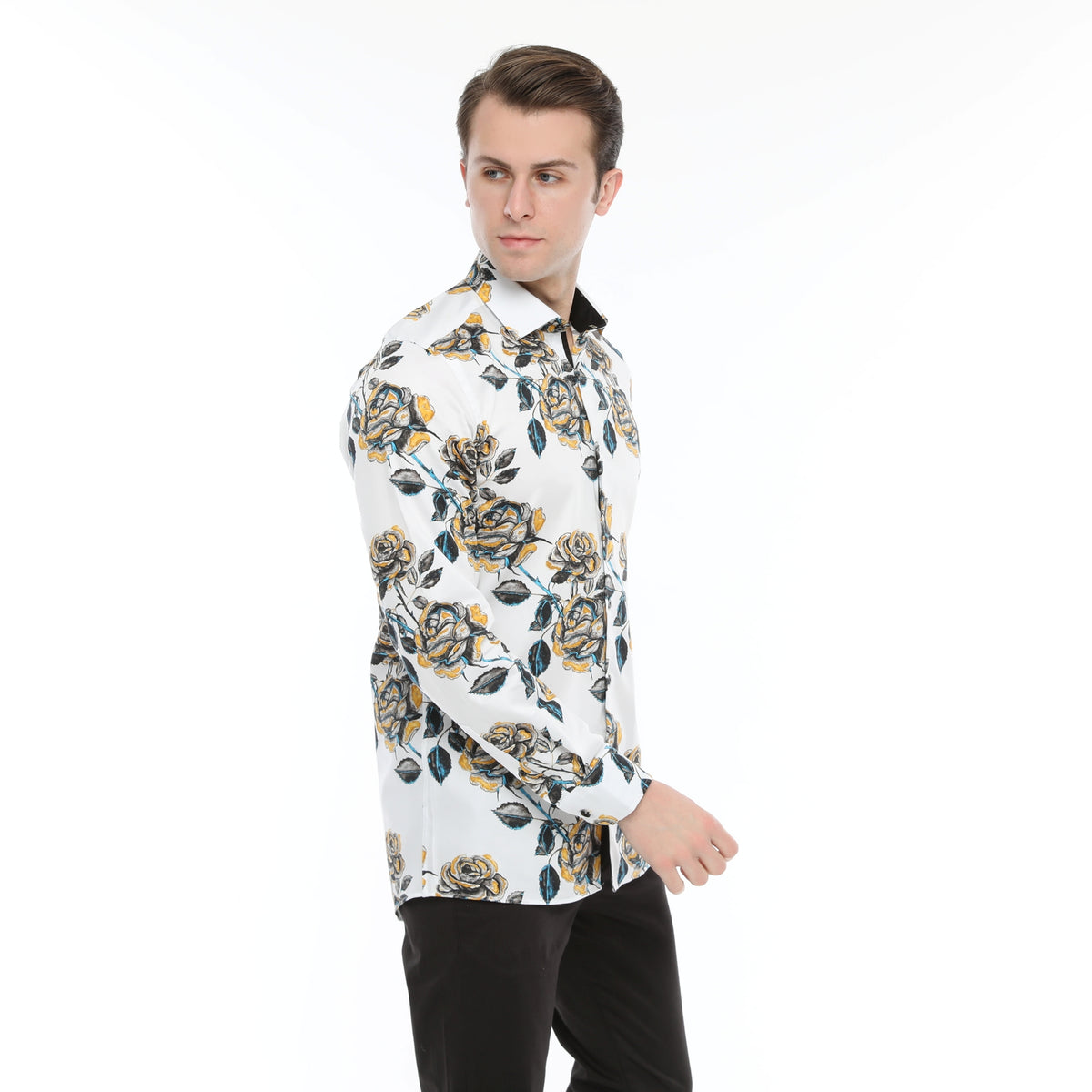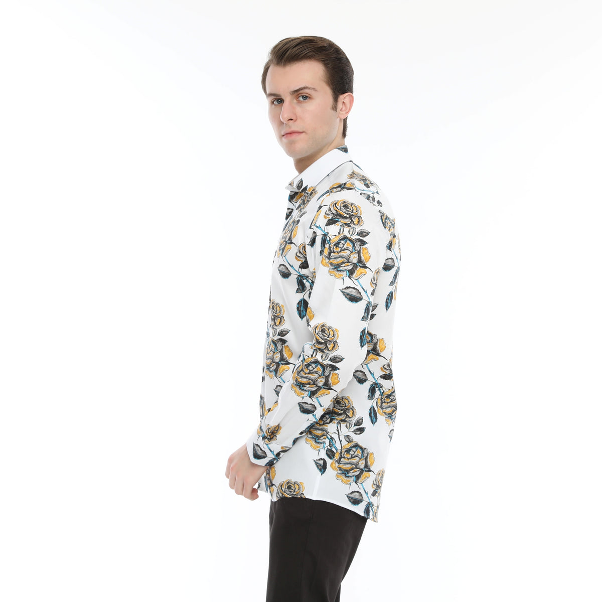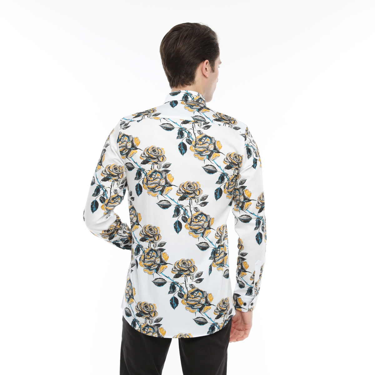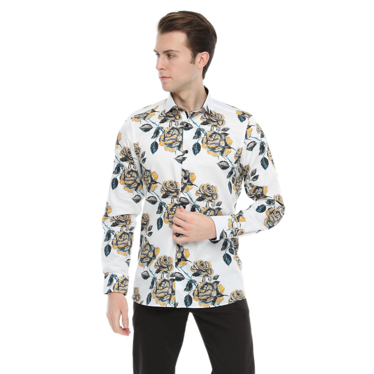 Watercolor Rose Print: Stand out with a distinctive watercolor floral print featuring elegant roses on this stylish long-sleeved party shirt