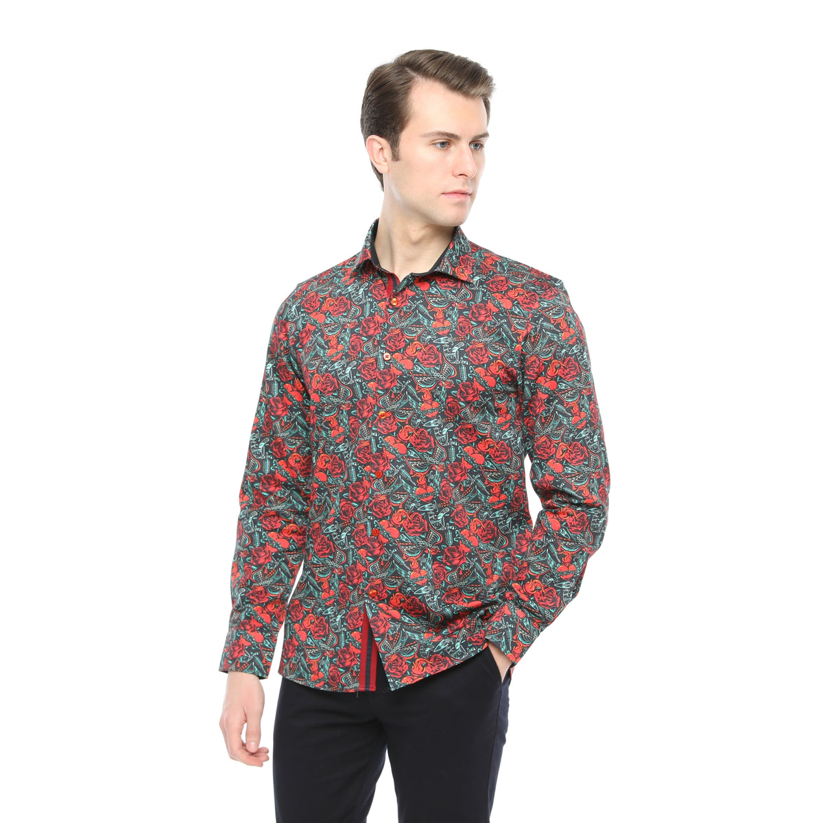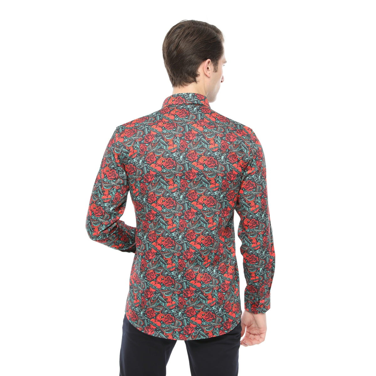 Xact Men's Vintage Tattoo Print Long Sleeved Shirt, Regular Fit